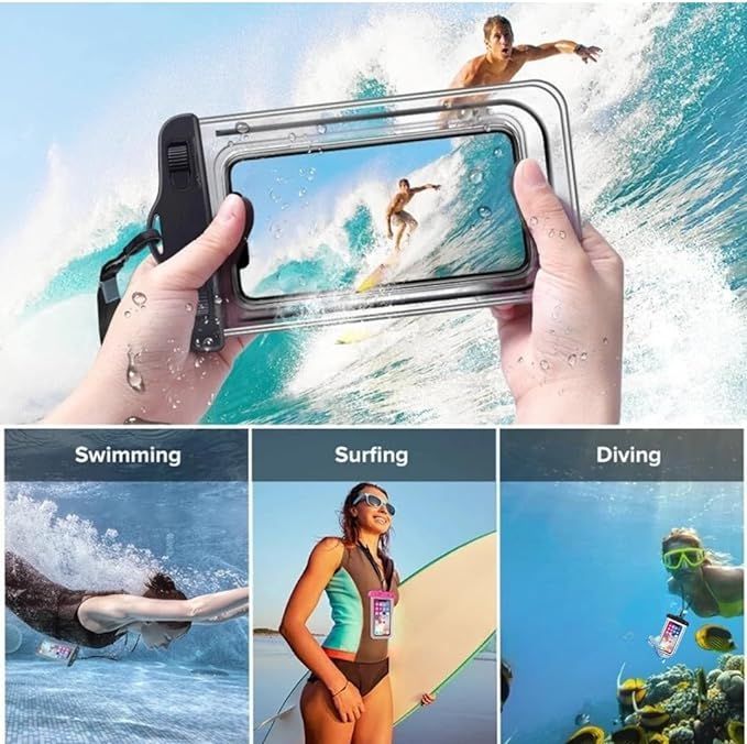 [Waterproof IPX8 Certified] Our waterproof phone pouch is made of high quality PVC material which helps protect your mobile phone when sealed and underwater. For extra protection please do a waterproof test with a tissue every time before using the waterproof pouch. This is very important to protect your phone. a travelling essentials waterproof phone case.